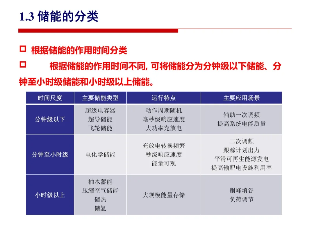 分钟级以下的超级电容器、超导储能等响应速度达毫秒级,适用于辅助一次调频;分钟至小时级的电化学储能充放电转换频繁,能量可观,可用于二次调频和平滑可再生能源发电;小时级以上的抽水蓄能、压缩空气储能等则能实现大规模能量存储,主要用于削峰填谷。