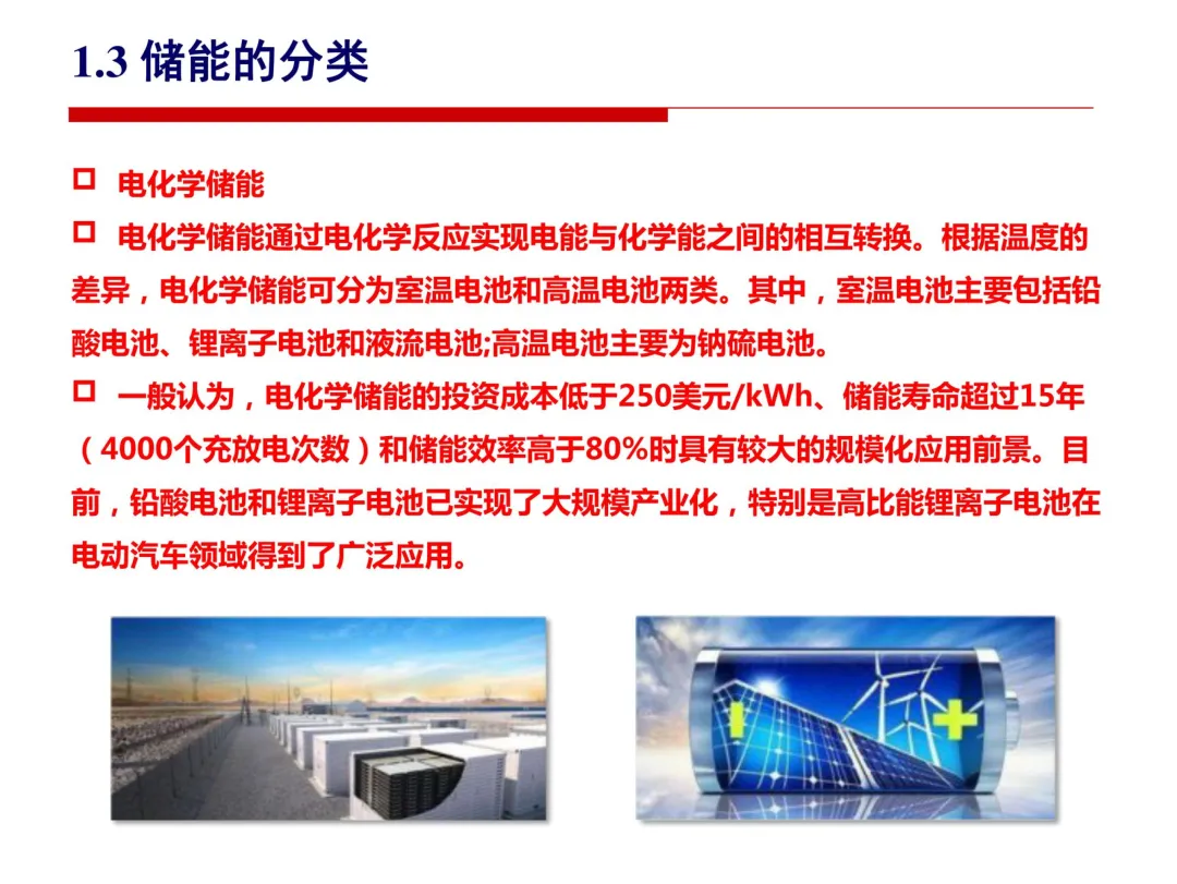 其中,抽水蓄能因具备调峰、调频等多种功能,在电力系统中应用最为广泛;电化学储能若投资成本低于250美元/kWh、寿命超过15年且效率高于80%,将具有较大规模化应用前景。