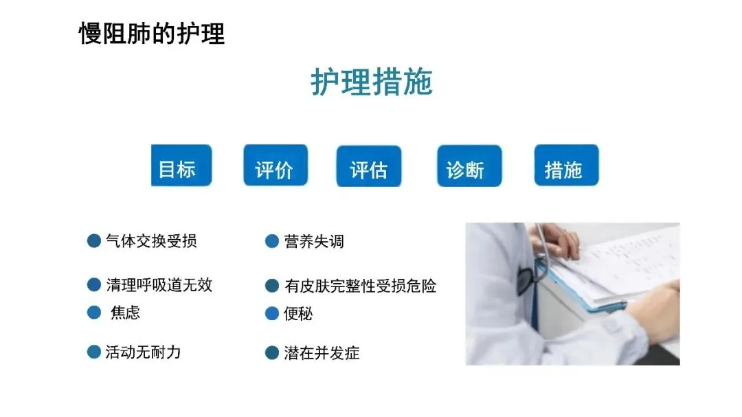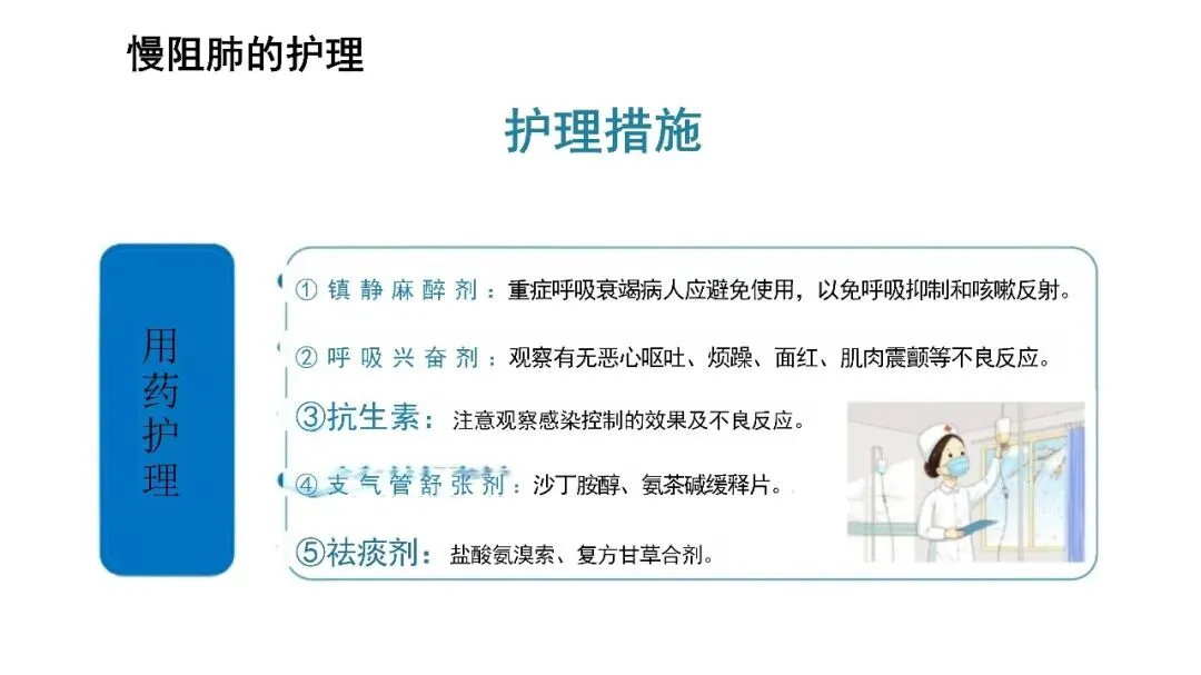 做好慢阻肺的护理,核心是围绕呼吸功能展开。首先要做好用药护理,遵医嘱使用支气管扩张剂、祛痰药等,不同药物有不同的使用注意事项,千万不能自行停药。其次要保持气道通畅,对于痰多粘稠的患者,要及时帮其翻身拍背、雾化吸入,必要时进行吸痰,保证呼吸顺畅。同时还要关注患者的营养状况、皮肤完整性,警惕呼吸衰竭、肺心病等并发症的出现。