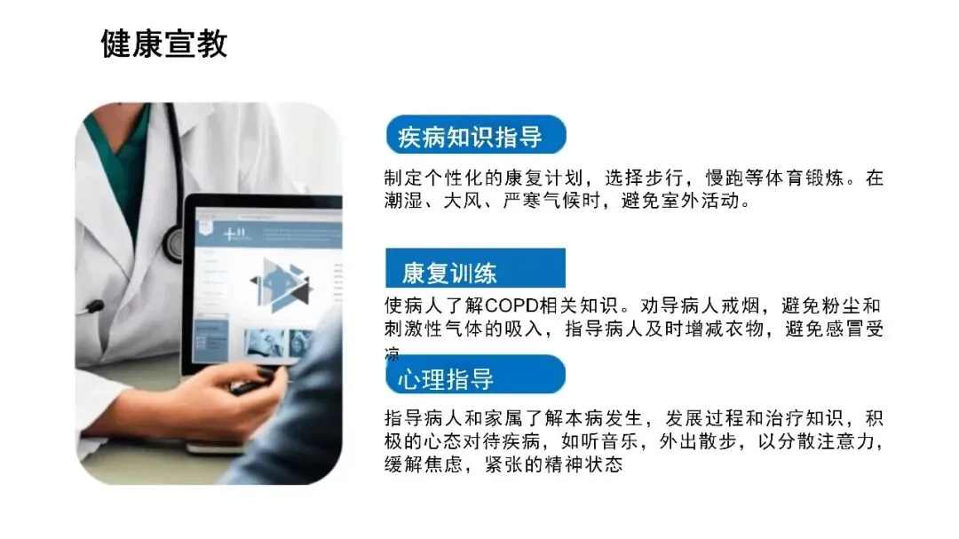 慢阻肺的病程虽呈渐进性,但只要做好早期筛查、规范的慢阻肺护理措施,同时坚持科学的家庭护理和康复训练,就能有效缓解症状、守住呼吸健康。无论是居家自我管理还是医院的慢阻肺护理查房,核心都是 “早干预、重坚持”,希望每一位慢阻肺患者都能科学应对,拥有高质量的呼吸生活。