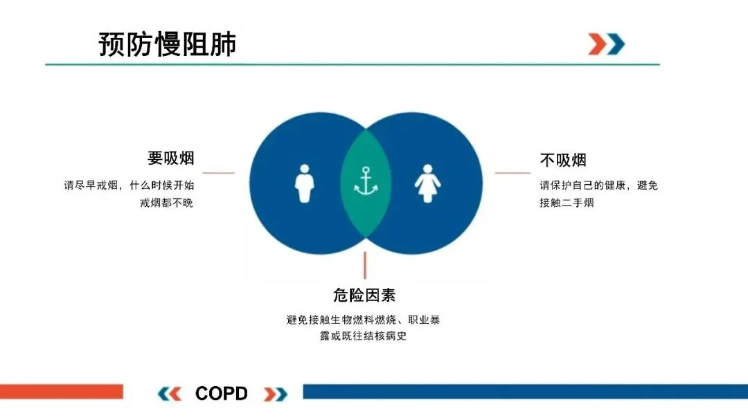 慢阻肺的防控远不止医院护理,日常的自我管理才是关键。戒烟是预防和控制慢阻肺最有效的措施,二手烟也要尽量避免;病情稳定的患者可以进行适度的康复训练,比如慢走、慢跑,注意避开恶劣天气;需要家庭氧疗的患者,要坚持低流量长期吸氧,每天保证 15 小时以上,同时注意用氧安全。另外,要及时增减衣物预防感冒,定期复查肺功能、血气分析等,出现呼吸困难加重等情况,一定要及时就医。