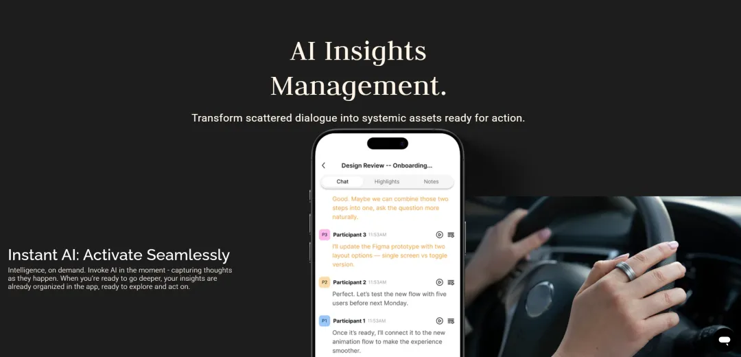 灵感捕捉:在通勤或思考时,突然有了好想法,长按戒指直接口述记录,AI会自动整理归档。