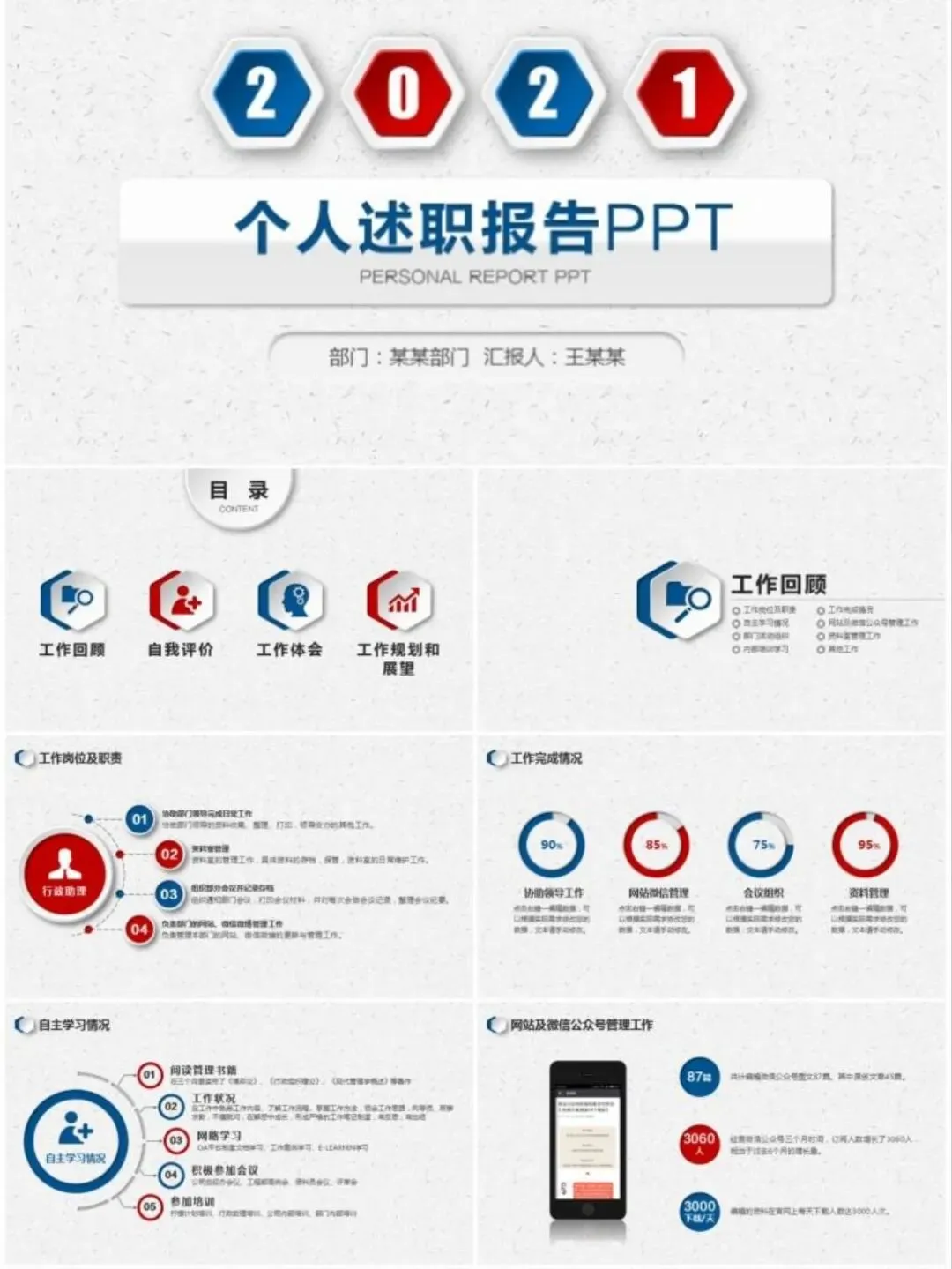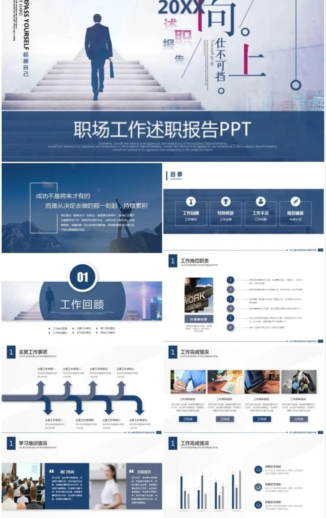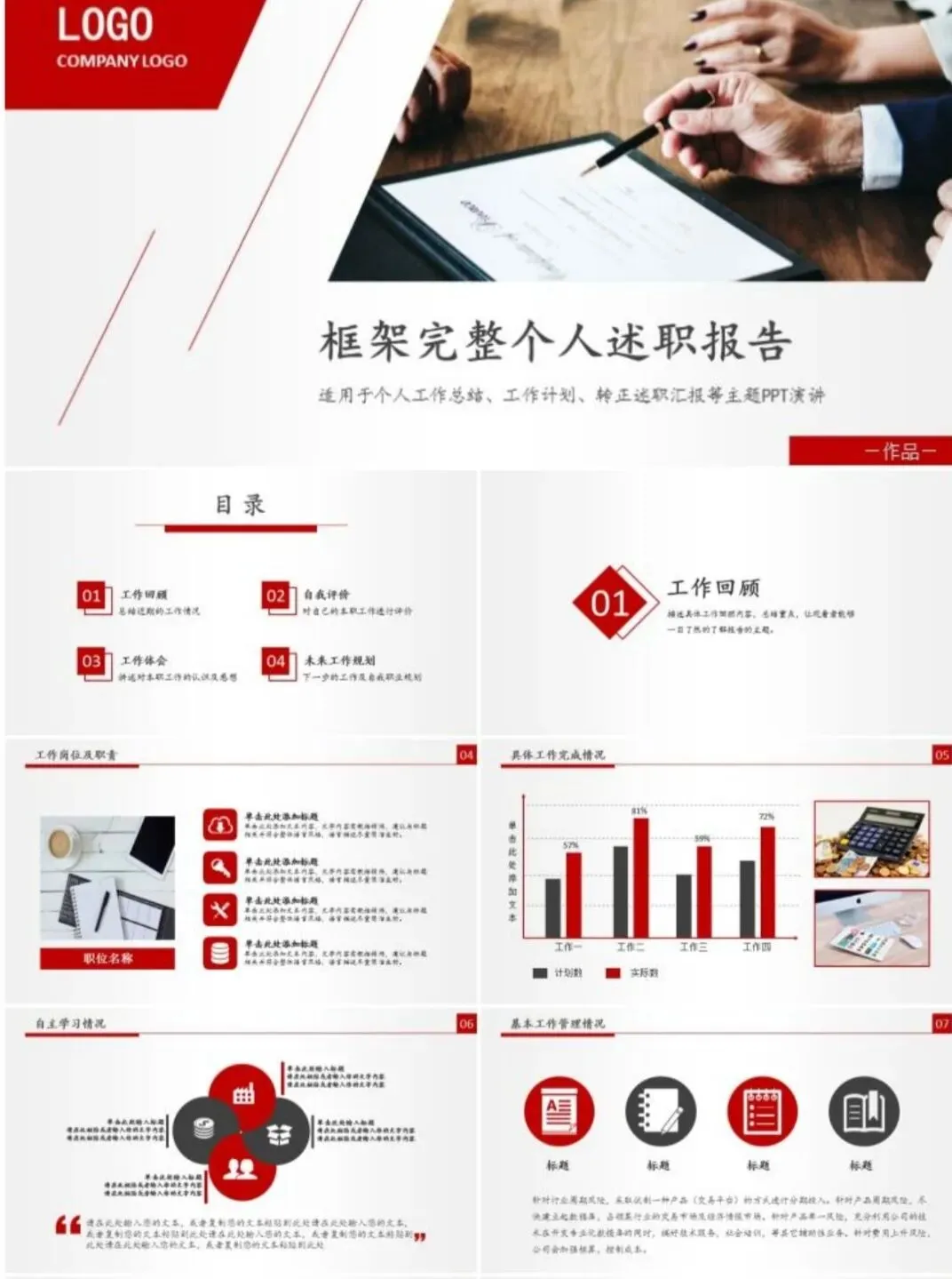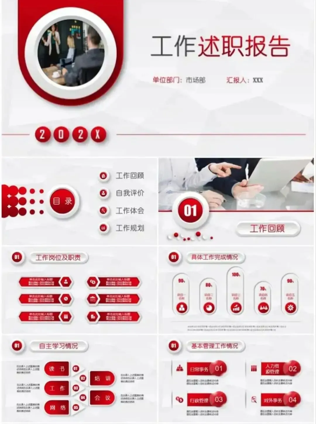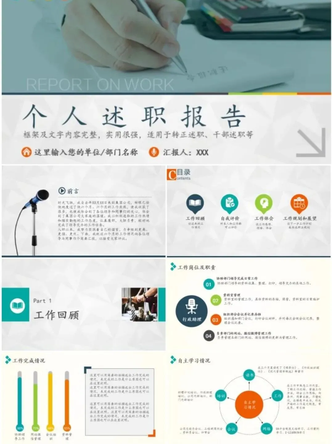 整理了一组通用述职报告PPT模板,简约大气、结构完整,适用于年终总结、岗位述职、工作汇报等多种场景。