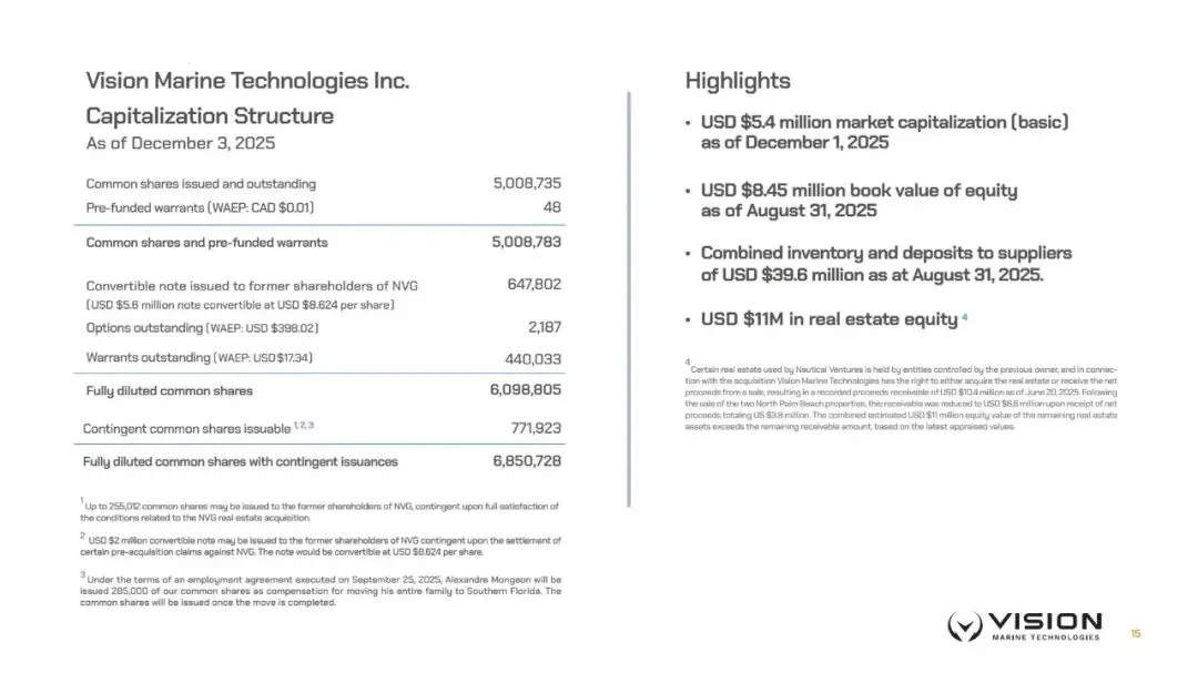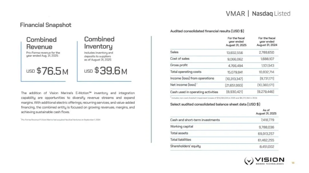 Vision Marine Technologies电动游艇技术开发,2025年6月收购Nautical Ventures后,转型为覆盖制造、零售和服务的综合性游艇集团。截至2025年11月30日的三个月,该公司营收1569万美元,净亏损431万美元。