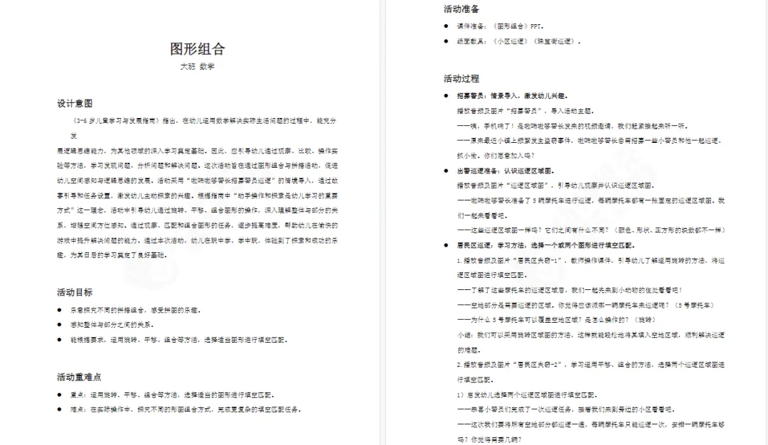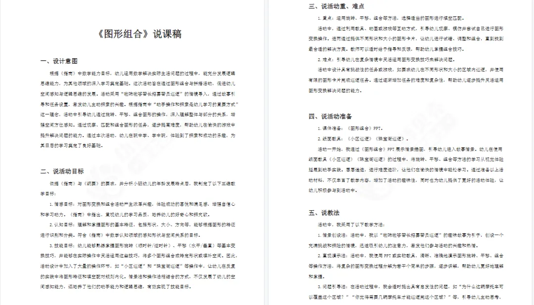 >幼儿园大班 数学公开课——《图形组合》ppt+教案+活动反思+说课稿+纸面教具分享