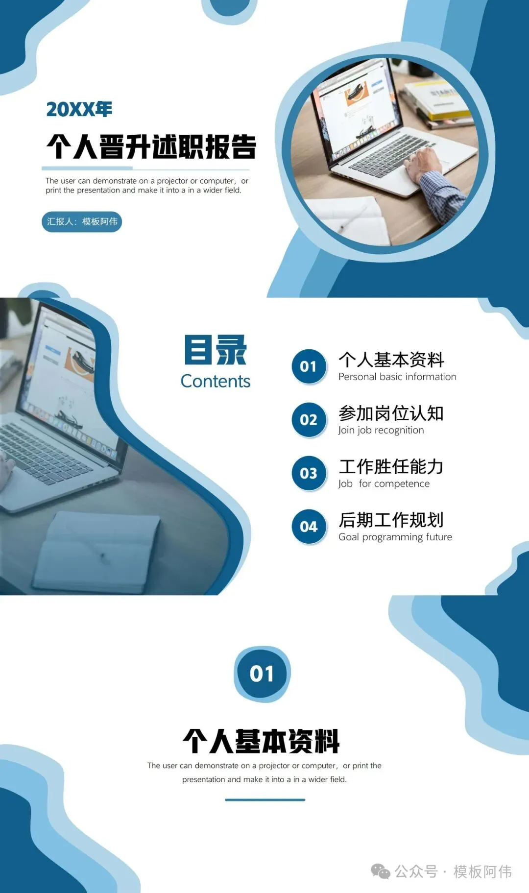 PPT模板编号:087,蓝色个人竞聘晋升述职报告PPT模板