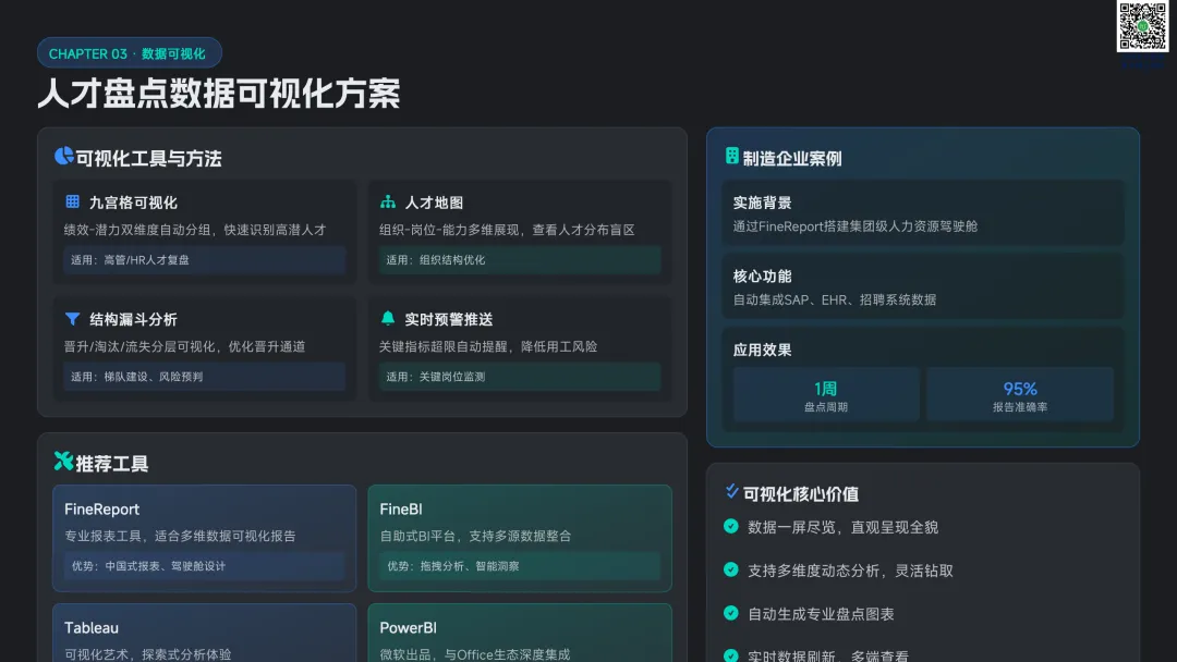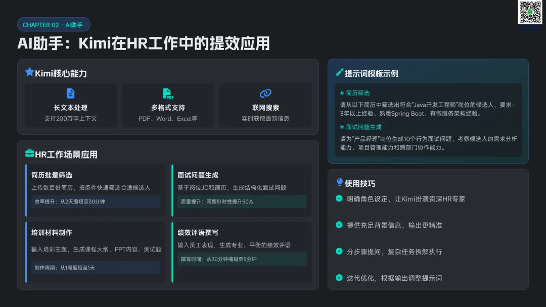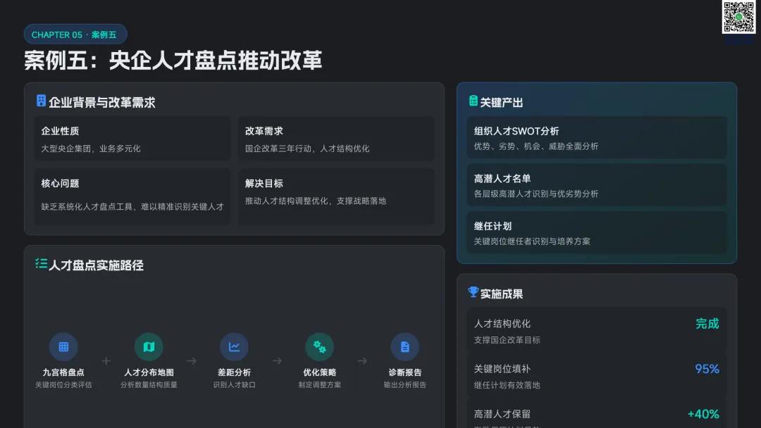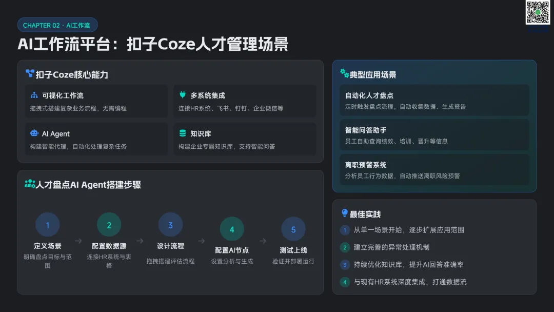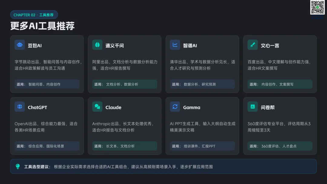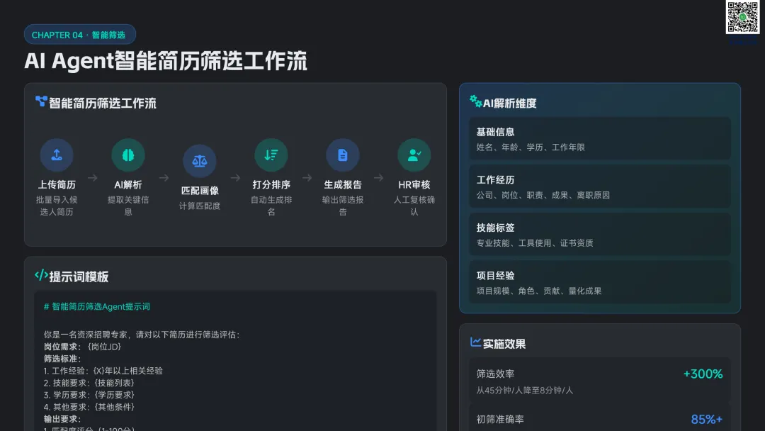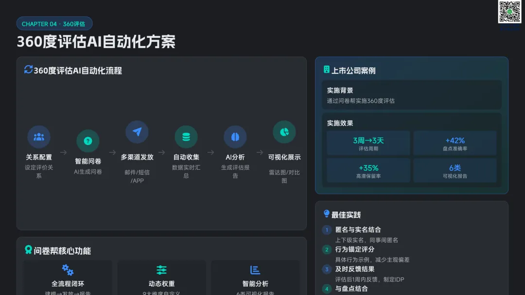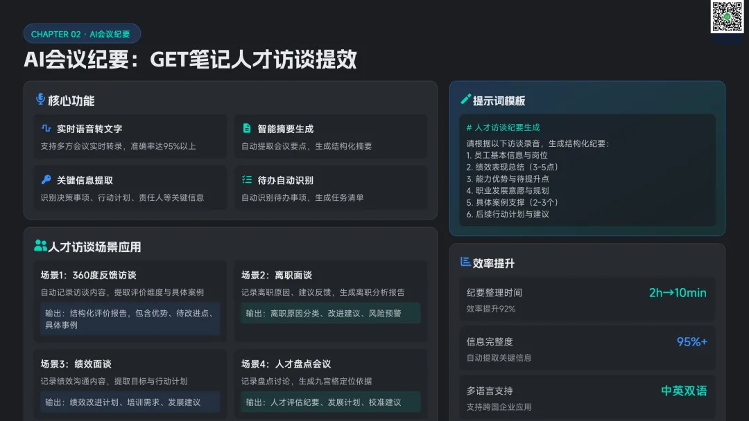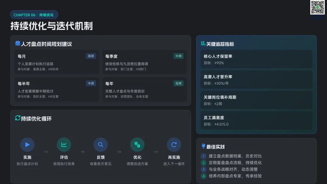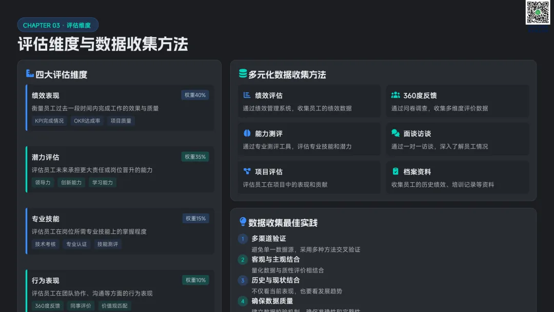 以九宫格绩效 - 潜力模型为核心,讲解人才分类标准与差异化管理策略。提供六步实施流程:明确目标→建立标准→收集数据→盘点会议→制定发展计划→追踪执行。构建四大评估维度,讲解 AI 人才画像四步法,搭配数据可视化方案,形成标准化、可落地的盘点体系。聚焦 AI 在盘点全流程的自动化应用:智能简历筛选、AI 面试评估、AI 辅助绩效评语、360 度评估自动化。提供 HR 高频提示词模板库,覆盖 JD 撰写、面试出题、绩效反馈、盘点报告等场景,实现从筛选、评估到分析的全链路提效。收录五大标杆案例:海尔 AI 人才画像、制造企业九宫格盘点、连锁零售人才调配、互联网公司 AI 面试提效、央企人才盘点改革。展示 AI 盘点在人才精准识别、梯队建设、内部调配、降本提效的实际成果,提炼可复制的成功要素。提出三步走落地策略:明确需求→梳理数据→全员推广。解答小公司适用性、主观性规避、结果反馈与应用等高频问题,建立月 / 季 / 半年 / 年的持续优化循环,并展望多模态面试、主动人才发掘、预测性分析、元宇宙评估四大未来趋势。完整内容,请点击图片放大查看最后强烈推荐加入人资学堂超级会员