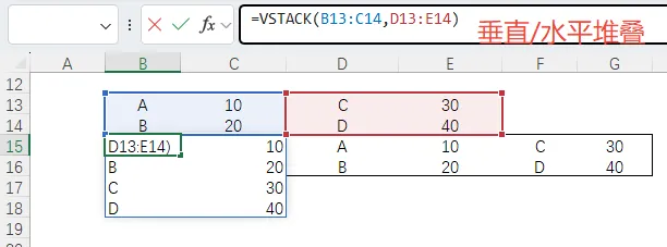 解析:在文献中,VSTACK和HSTACK 堪比排版神器。比如在蒙特卡洛模拟中,可以直接将计算好的成本、QALYs 和生命年横向拼成一个完整的结果表。依旧举例:VSTACK和HSTACK 就简单多了。前一个是垂直堆叠,将A/B/C/D连带着各自的数值垂直堆叠成一个新的矩阵;后一个是水平堆叠。实战意义:如果不熟悉的朋友会觉得还不如CTRL+C/V,但对于规范化建模是很重要的一步。摒弃了过去为了对齐数据而预留大量空白行列的坏习惯,实现了数据的模块化拼装。3.封装思维——在单元格里写代码(LET, LAMBDA)