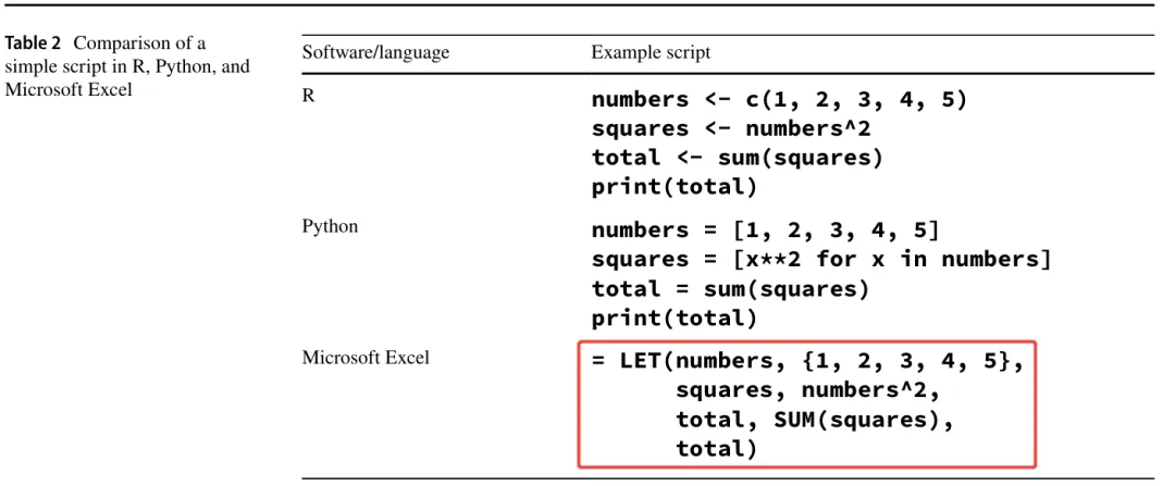 解析:LET函数允许声明变量,LAMBDA允许自定义函数。①下图是LET 函数的文献解释,熟悉R或者python的朋友相信一眼就能看懂,LET前3行无非是先定义名称,再定义计算逻辑,第4行输出total。②LAMBDA 函数定义稍微绕一些,可以理解为在 Excel 里自己“创造”一个新函数,就像写一个简单的小程序,起个名字,然后像用 SUM、AVERAGE 一样反复调用它。你想定义一个“增长率”的函数,计算逻辑是(本期-上期)/上期:=LAMBDA(old,new,(new-old)/old)(A2,B2) A列是上期数值,B列是本期数据,这样会自动显示增长率。也可以使用名称管理器将上述LAMBDA使定义为“增长率”,在excel中直接调用。当直接用在建模时是非常有趣的,感兴趣的朋友可以自己试一下文章中结合REDUCE函数进行马尔可夫循环:=REDUCE(v_init, SEQUENCE(cycles), LAMBDA(dist, cycle, VSTACK(dist, MMULT(INDEX(dist, cycle), m_tm_A)))解释:=REDUCE(初始分布, SEQUENCE(总周期数), LAMBDA(累计矩阵, 当前周期, VSTACK(累计矩阵, MMULT(矩阵中前一行数据, 转移矩阵))))实战意义:这是向 R 语言靠拢的关键一步。意味着可以在一个单元格内完成“定义参数→运行循环→输出结果”的完整逻辑闭环。二、3大局限性