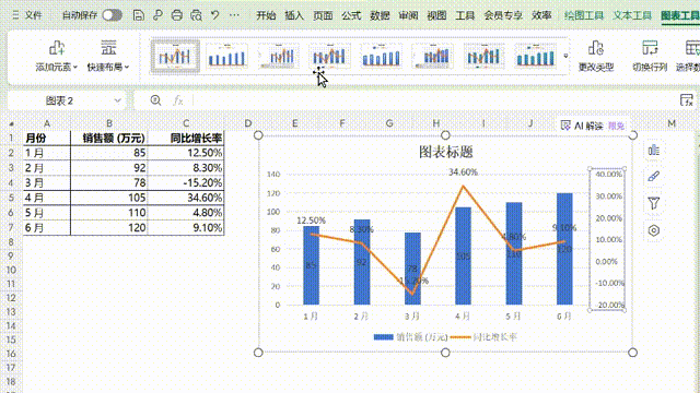 自动生成的图表如下图所示: