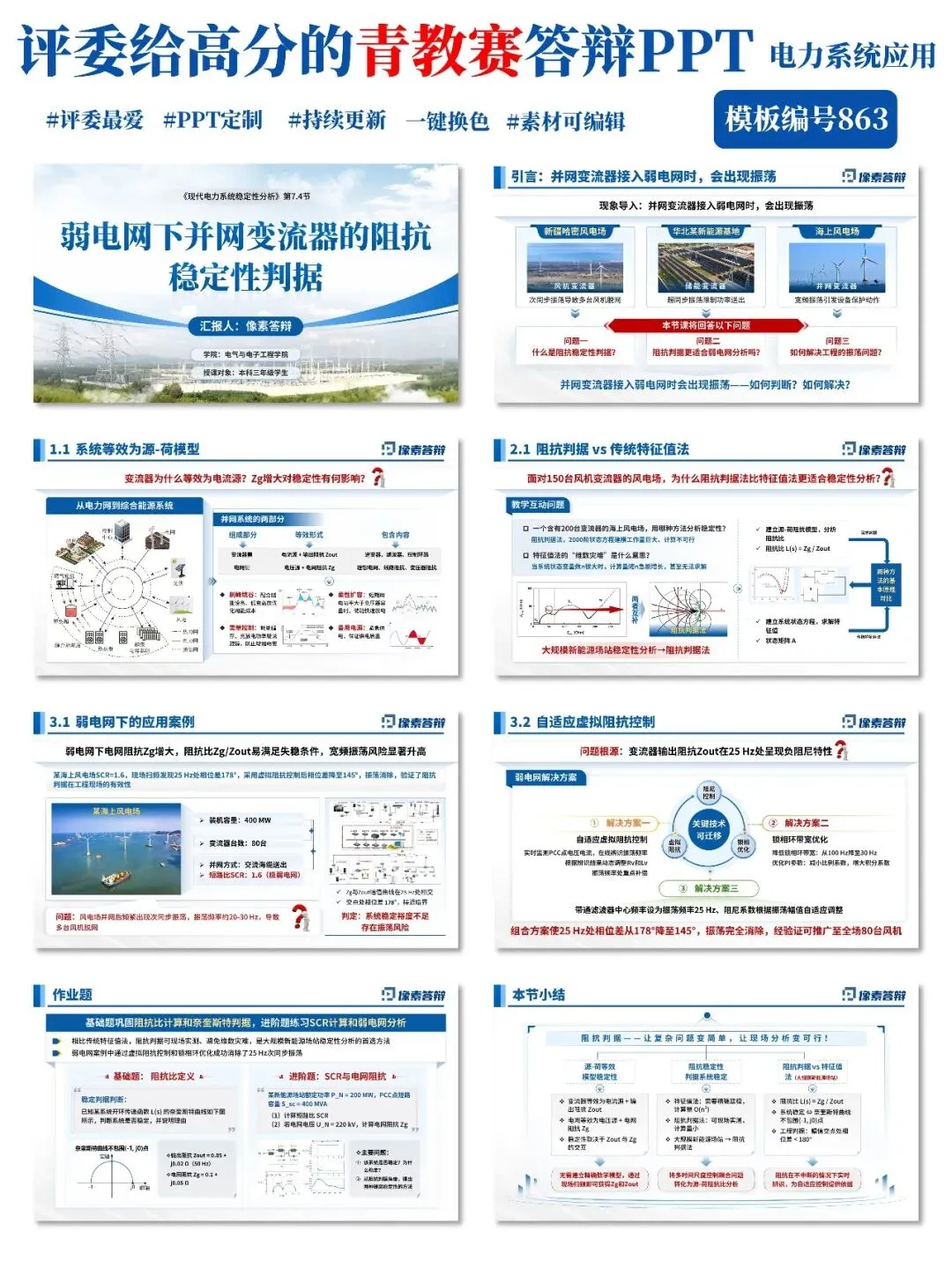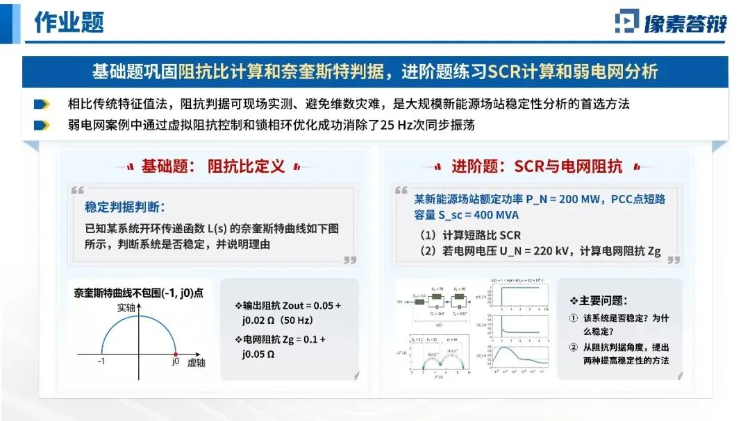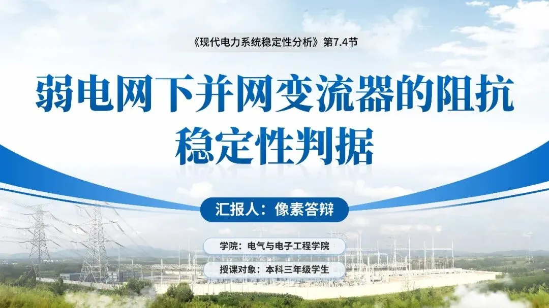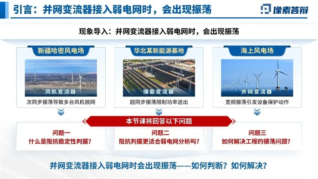 开课即展示新疆哈密、华北新能源基地、海上风电场的实际振荡脱网视频,抛出三个核心问题:什么是阻抗判据?为什么它更适合弱电网?如何解决工程振荡?让学生带着问题进入学习。