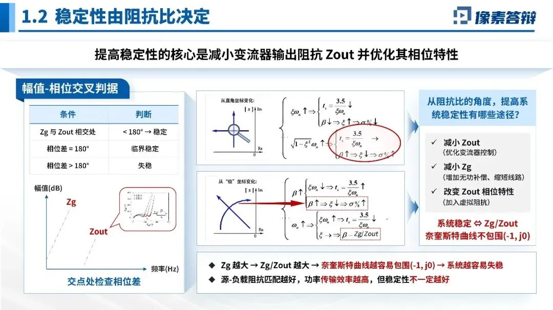 将并网系统等效为“变流器侧(电流源+Zout)”与“电网侧(电压源+Zg)”,稳定性由阻抗比Zg/Zout决定。通过幅频特性图讲解“幅值交点处相位差<180°”的工程判据,避免复杂数学。