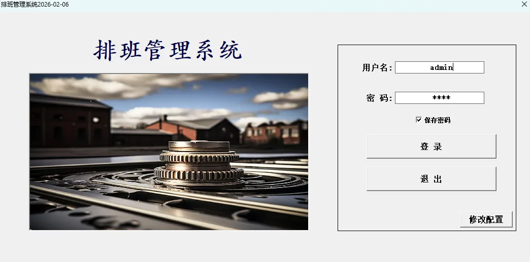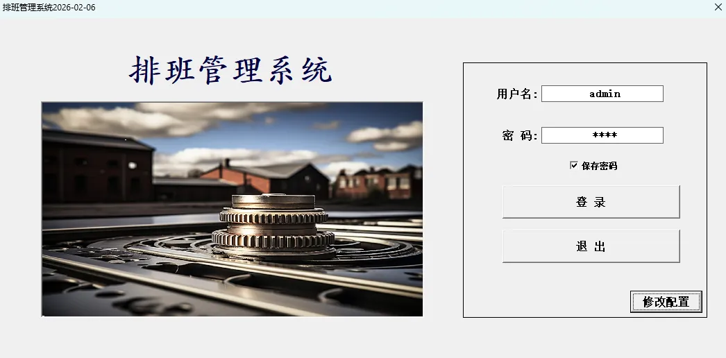 6、局域网数据同步:需要实现局域网数据同步可将当前系统的数据库文件放在局域网的共享文件夹内,然后再登录界面修改配置选择共享的数据库路径。其他电脑通过“排班管理系统1.0.xlsm”访问既可。