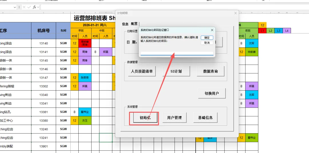 4.7 初始化:初始化可一键清空所有的排班信息;初始化需要输入初始验证密码“2023”。