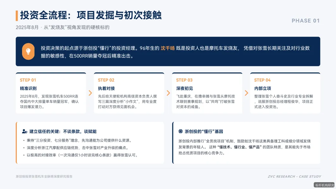 浙创投对张雪机车的投资全流程,完整展现了其投资理念与决策逻辑: