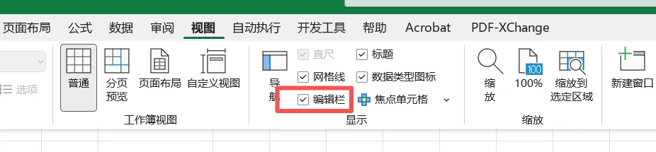 解决步骤: 直接点击顶部「视图」选项卡,找到「编辑栏」选项,勾选即可显示,操作一秒完成。(Excel网页版编辑栏始终显示,仅桌面版可隐藏)
