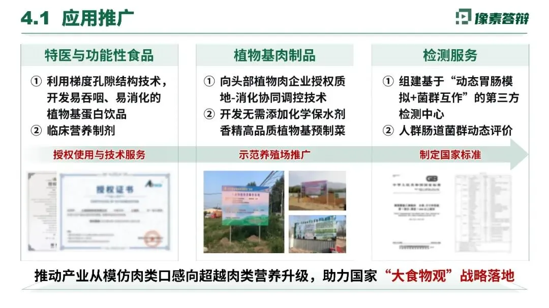 项目构建“结构-消化”耦合理论,首创国人精准营养评价体系,研发智能技术突破高端加工瓶颈,成果获WHO采纳并搭建国际联盟。应用覆盖特医食品、植物肉等领域,制定国标并提供检测服务,实现产业、社会、环境、健康多维价值。