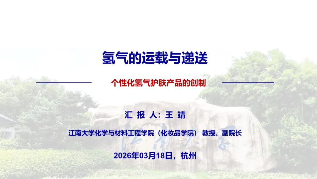 3月18 日,2026CiE美妆创新展在杭州国际博览中心举办。江南大学化学与材料工程学院(化妆品学院)与CiE合作,以「精准抵达,个性表达:递送技术如何打造美护产品新护城河?」为主题举办专场技术论坛。论坛现场,江南大学化学与材料工程学院(化妆品学院)副院长王靖教授以“氢气的运载与递送:个性化氢气护肤产品的创制”为题,分享了两项氢气运载与智能递送新技术:富氢干膜布和脂质体微囊产氢反应器HybridH2Gen™,为创制个性化氢气护肤产品提供了新的解决方案。该技术成果由江南大学王靖教授团队与浙江奇麟正维医学科技有限公司合作研发。据悉,在3月15日北京召开的“第十七届中国产学研合作创新大会”上,由浙江奇麟正维医学科技有限公司完成的成果“氢分子新材料在美妆领域的转化应用”入选2025 年中国产学研合作优秀创新成果(化妆品领域仅5项成果入选)。①免费精准对接 包材/代工/原料