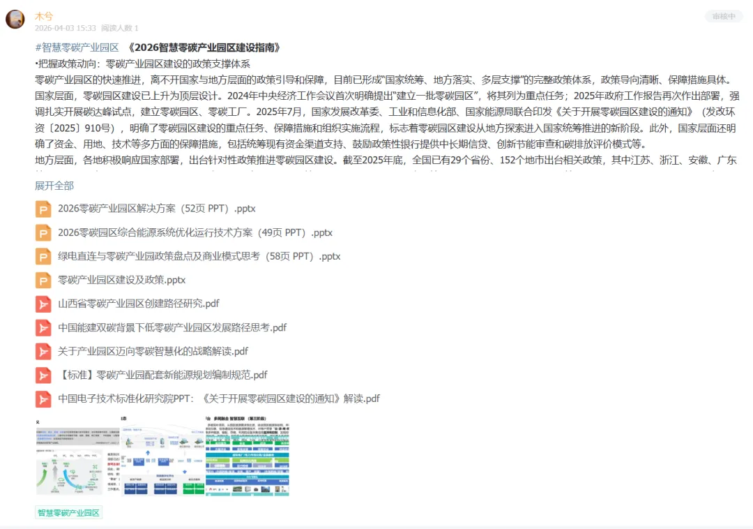 (【数智行业·领地】星球,搜索“智慧零碳园区”标签方案完整版)苹果用户公众号回复“1”加木兮或者直接加木兮(MuxiYuebao0920),加入星球~