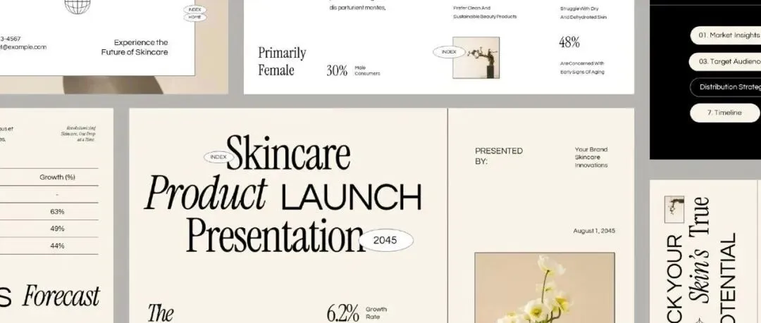 【PPT模板】20页+化妆品作品集VI品牌提案宣传Google Slides幻灯片PPT演示文稿Keynote模板-第10731期-