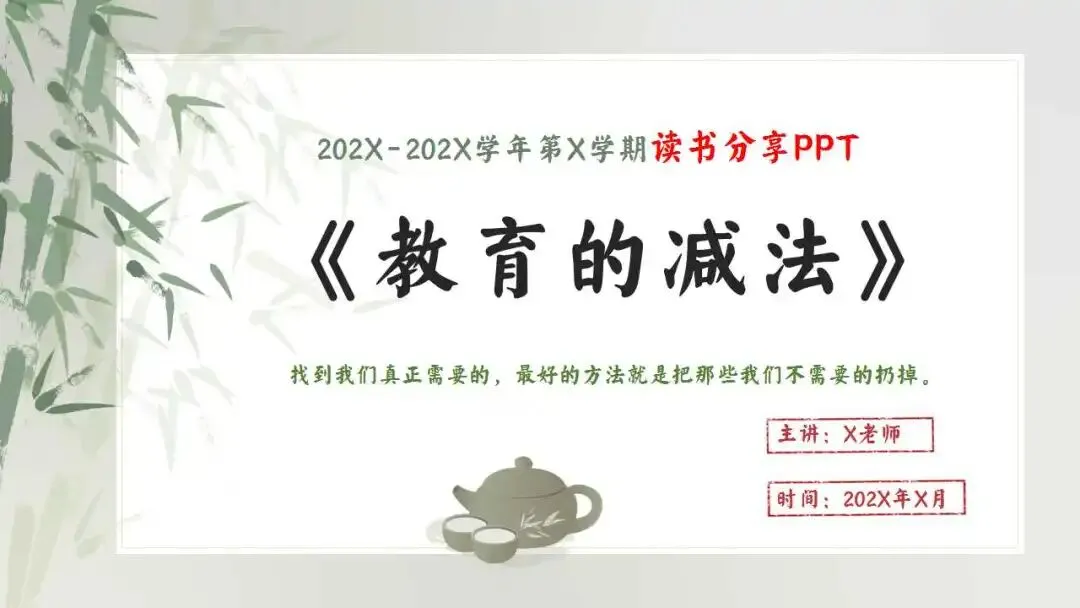 教师读书分享会ppt:教育的减法。
