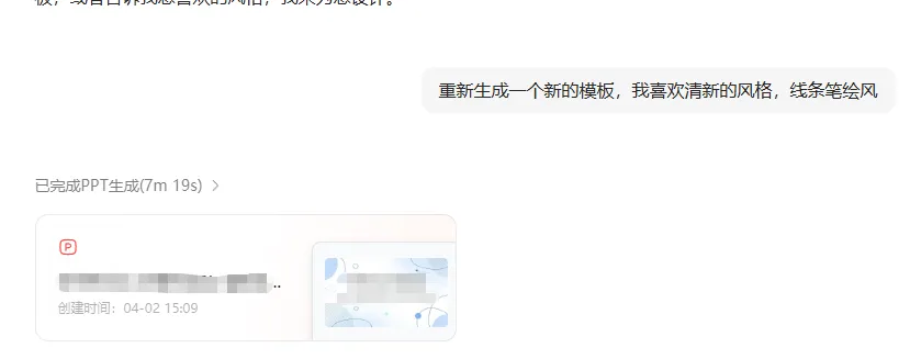 比如:"帮我做一份8页的Q1销售汇报PPT,目标受众是公司管理层,风格要专业商务,包含数据图表、产品展示、下季度规划"