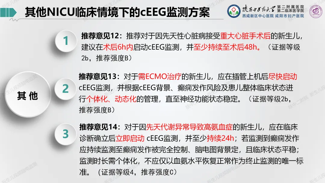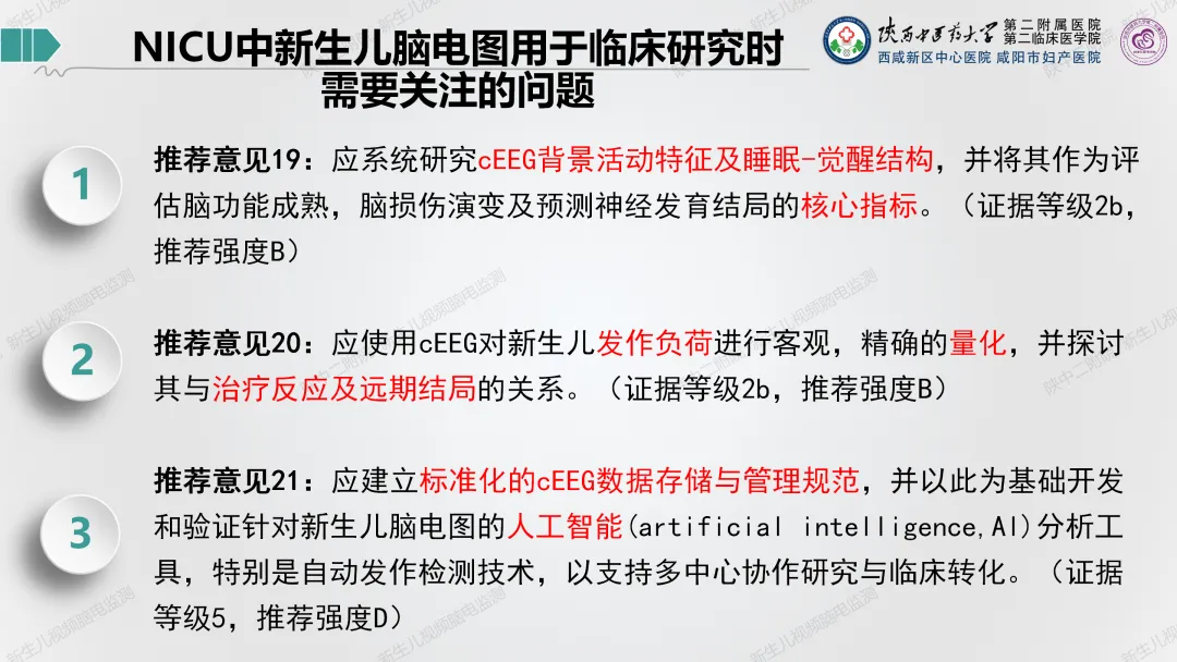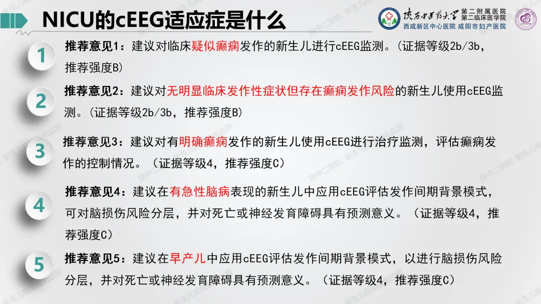 5.新生儿脑损伤的评估:包括生长发育评估、神经行为测评、新生儿视频脑电监测、脑干诱发电位(BAEP)、脑/肠/肾氧监测、颅脑超声、脑血流多普勒、无创血流动力监测等。