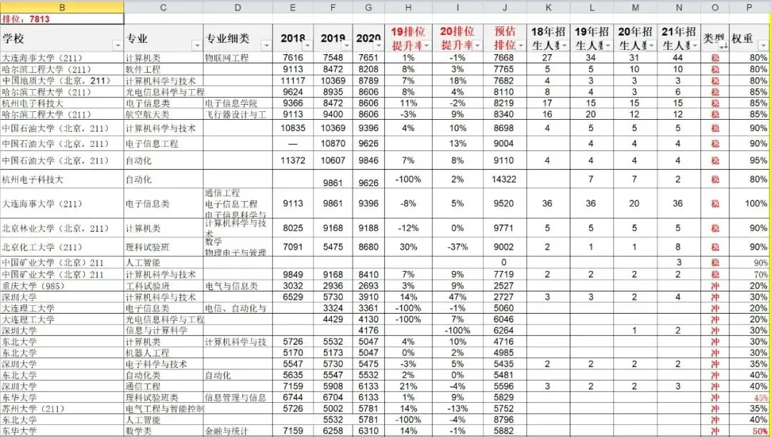 冲、稳、保各段排序,按心仪程度由高到低,而不是按“权重”。