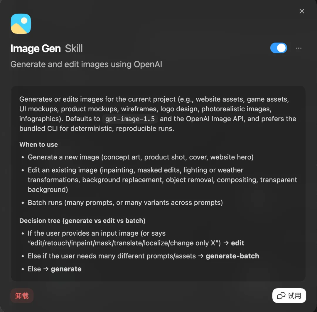 imagegen 则是 Codex 官方处理图片生成和图片编辑的能力。