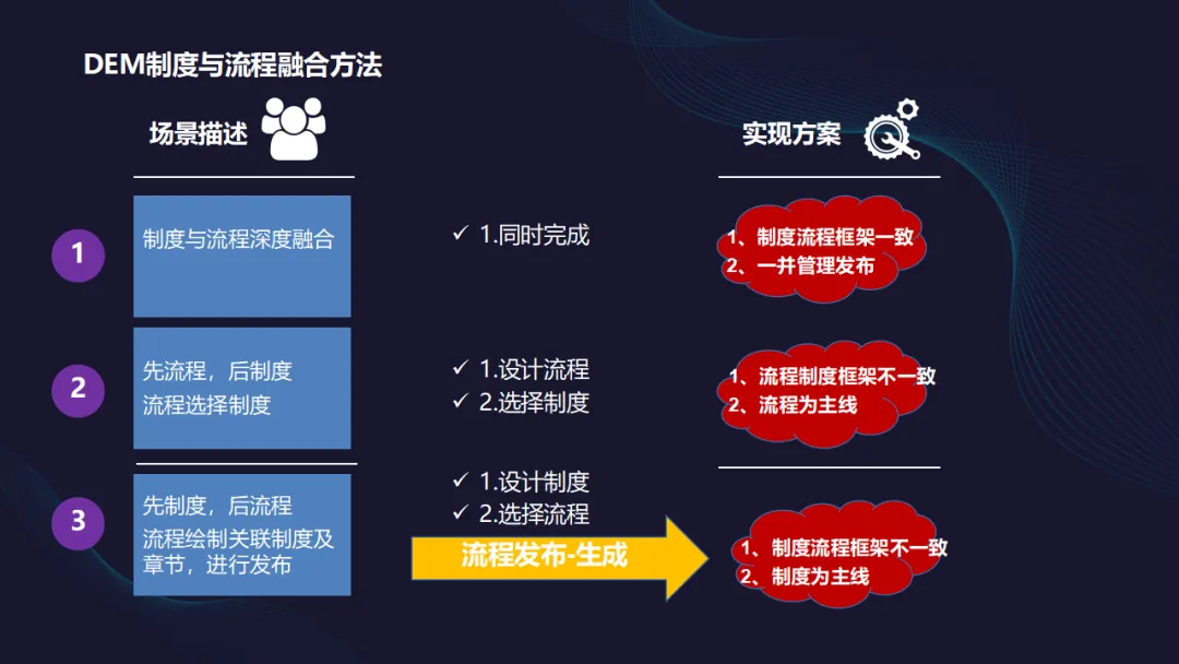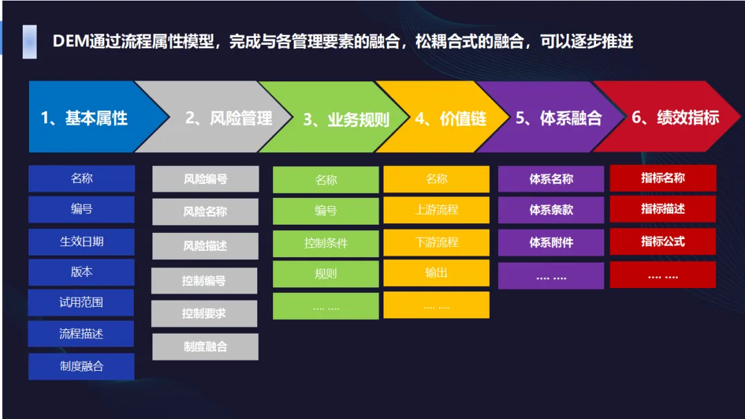 本方案以基于流程的企业经络管理框架DEM为核心,面向大型集团企业打造全流程数字化管控平台,打通从业务梳理到绩效落地的完整闭环,助力企业落实内控合规与数字化转型要求。当前企业普遍存在烟囱式系统林立、跨部门流程断点多、业务与IT脱节、管理要素分散等问题,难以实现端到端业务协同与全局最优。 方案以流程为核心纽带,推动流程与组织、制度、风险、绩效、管理标准深度融合,采用松耦合模式分步落地,适配企业渐进式转型需求。通过服务编排拉通ERP、SRM、MES等现有系统,构建统一数据底座,实现最小单元流程信息化与数据共享,避免重复建设。平台覆盖流程设计、运行、绩效分析、运维管理全生命周期,集成AI与低代码技术,高效完成流程导入、建模与优化。 实施遵循基础期、深入期、优化期三阶段路径,先搭建流程框架与制度融合基础,再推进风险、体系、岗位一体化融合,最终实现端到端流程贯通与智能优化。平台可显著提升流程效率,推动企业从职能驱动转向流程驱动,构建可度量、可追溯、可预测的数字化管理体系,打造合规高效的核心竞争力。