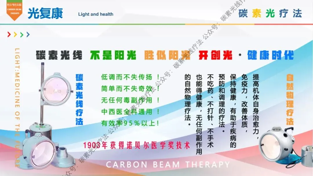 1903年获得诺贝尔奖的技术,全世界唯一全科(中西医)通用仪器、应用临床130多年、兼容养生、预防疾病、调理疾病、治疗疾病、不吃药、不打针、不手术也能得健康,无任何副作用、提高机体自身治愈力,免疫力,改善体质和保持健康的自然物理疗法。