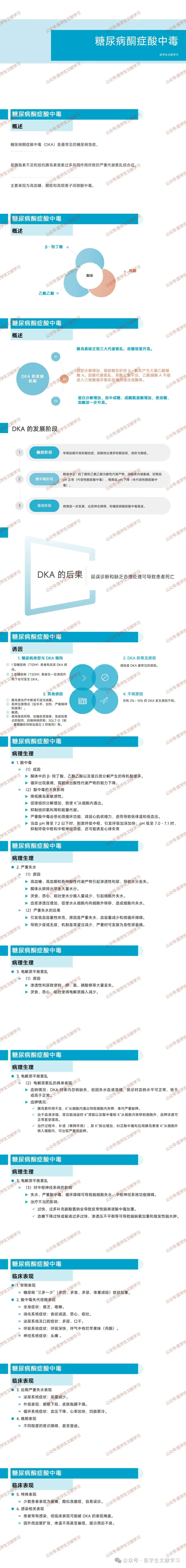 疾病定义与概述:DKA 是最常见的糖尿病急症,主要表现为高血糖、酮症和高阴离子间隙酸中毒,是胰岛素不足和拮抗胰岛素激素过多共同作用所致的严重代谢紊乱综合征。酮体包括 β - 羟丁酸、丙酮和乙酰乙酸 。