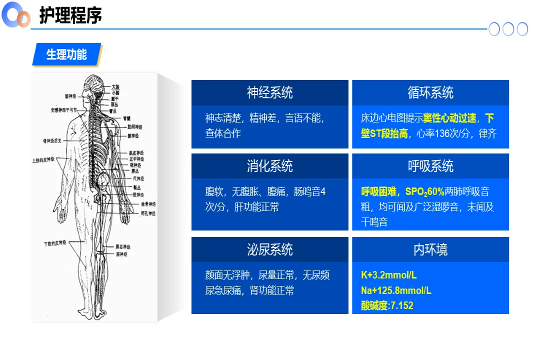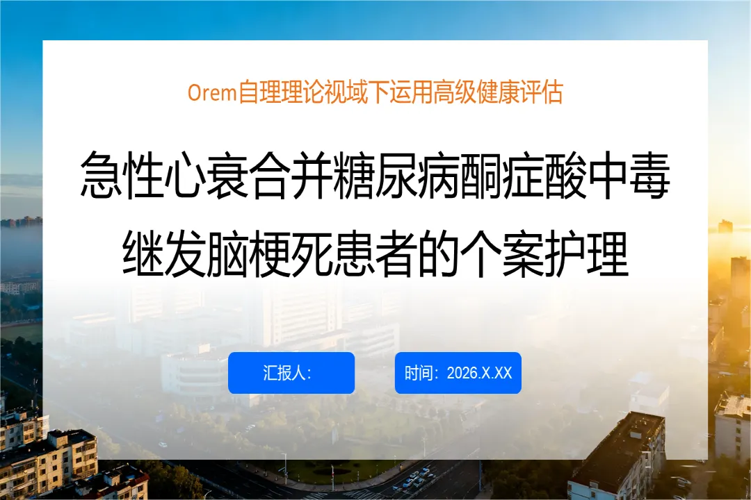 🍎内容:急性心衰合并糖尿病酮症酸中毒继发脑梗死患者的个案护理-医护PPT模版