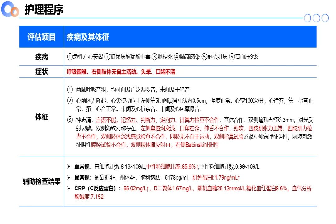【医护PPT】急性心衰合并糖尿病酮症酸中毒继发脑梗死患者的个案护理