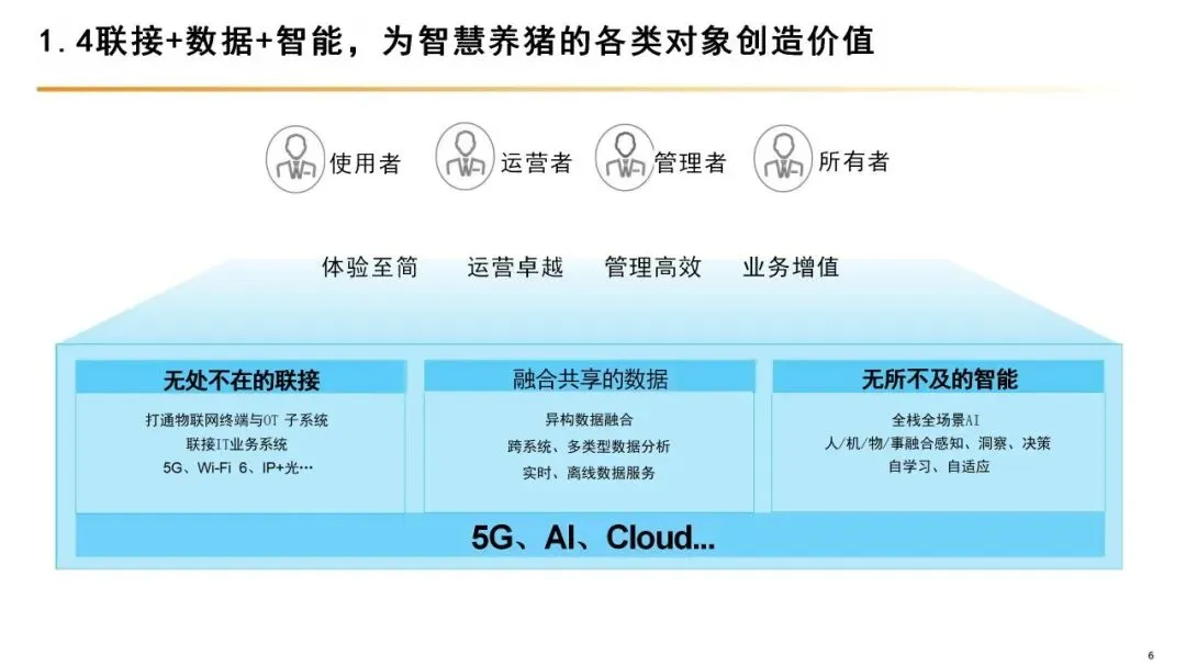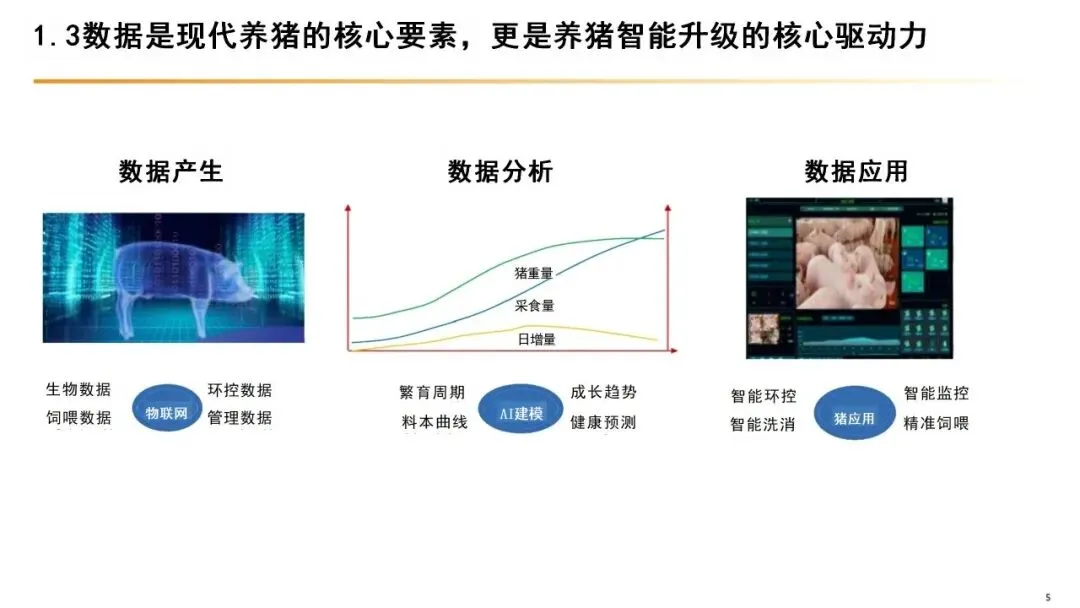 智慧养猪并非简单的“设备智能化”,而是以数字化、智能化技术为核心,融合物联网、人工智能、大数据、5G通信等新一代信息技术,贯穿生猪育种、养殖、防疫、粪污处理等全流程的现代化养殖模式。其核心是通过技术手段实现养殖过程的精准管控、数据化决策,替代传统依赖人工经验的粗放式管理,本质是“数字技术+生物技术”的深度融合。