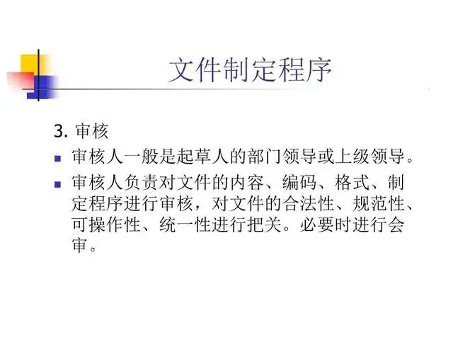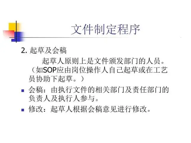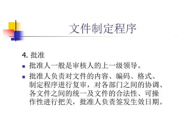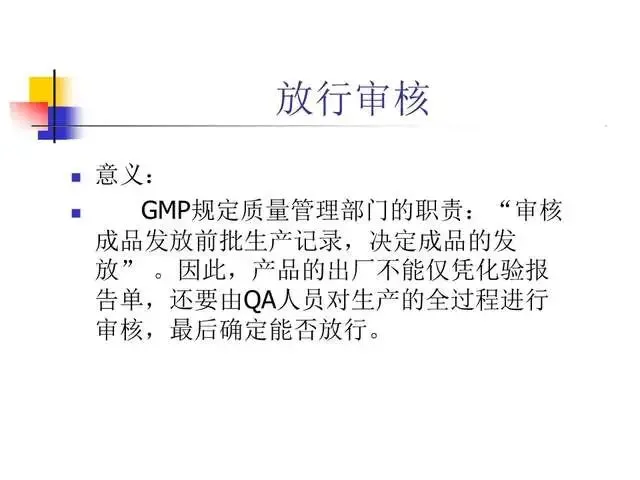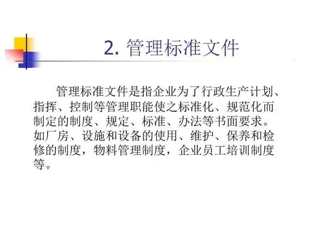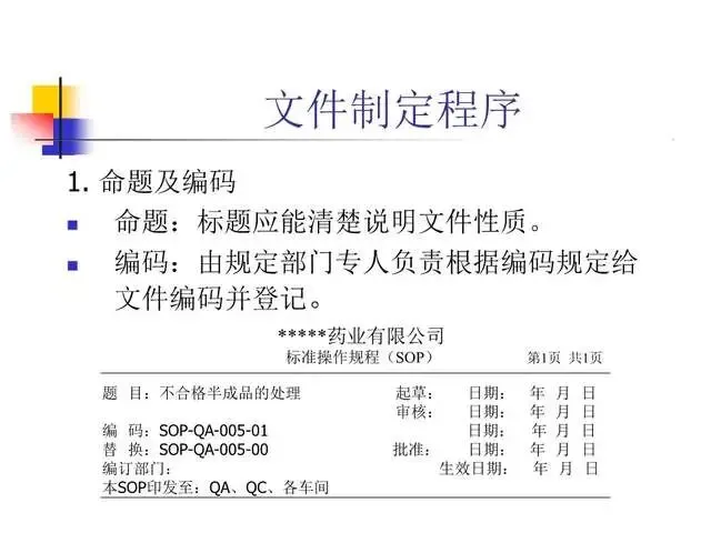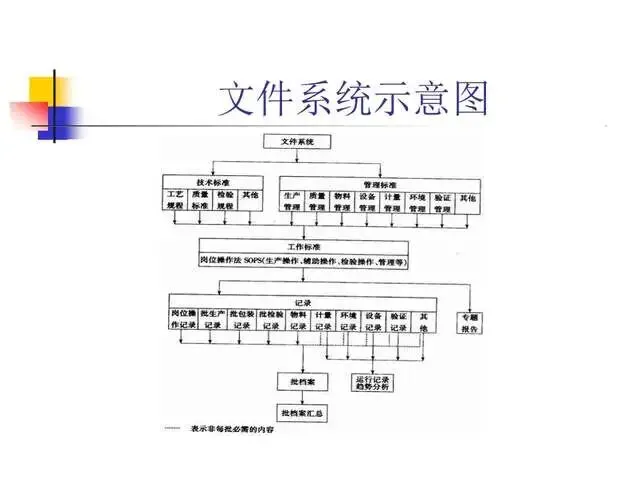 明确规定保证高质量产品的质量管理体系。行动可否进行以文字为准,避免纯口头方式产生错误的危险性。一个行动如何进行只有一个标准,保证有关人员收到有关指令并切实执行,规范操作者的行为,保证对GMP的遵循。文件系统提供各项标准规定。