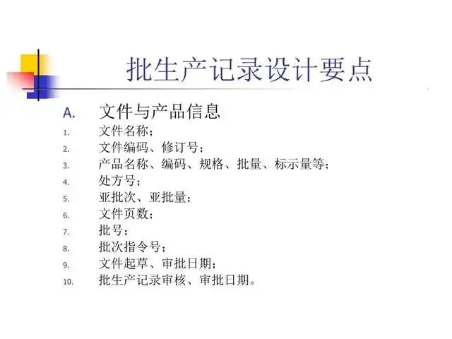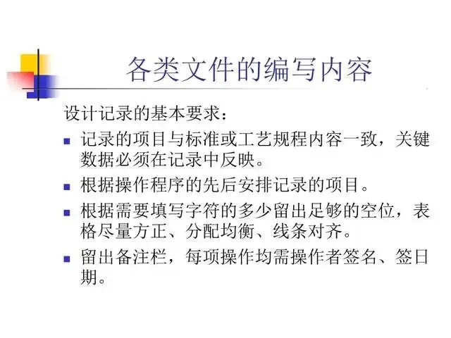 实施GMP的一个重要特点就是要做到一切以文件为准。按照GMP的要求,生产管理和质量管理的一切活动均必须以文件的形式来体现。
