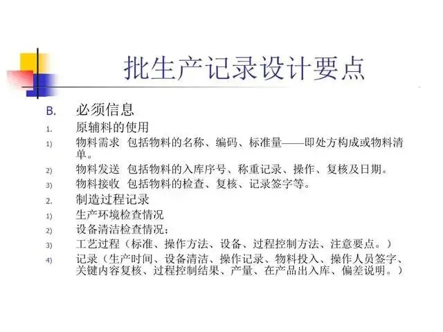 任何行动后均有文字记录可查,可以对不良产品进行调查和追踪,查原因、追责任,为改进工作提供依据。书面的文件系统有助于对企业成员进行GMP培训,保持企业内部良好的联系,有助于GMP认证工作的进行。
