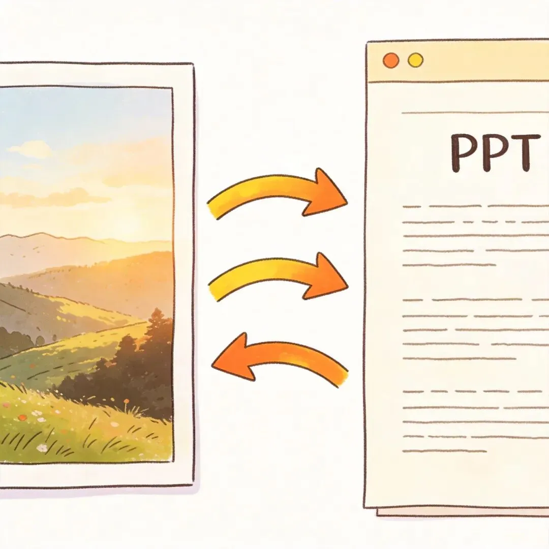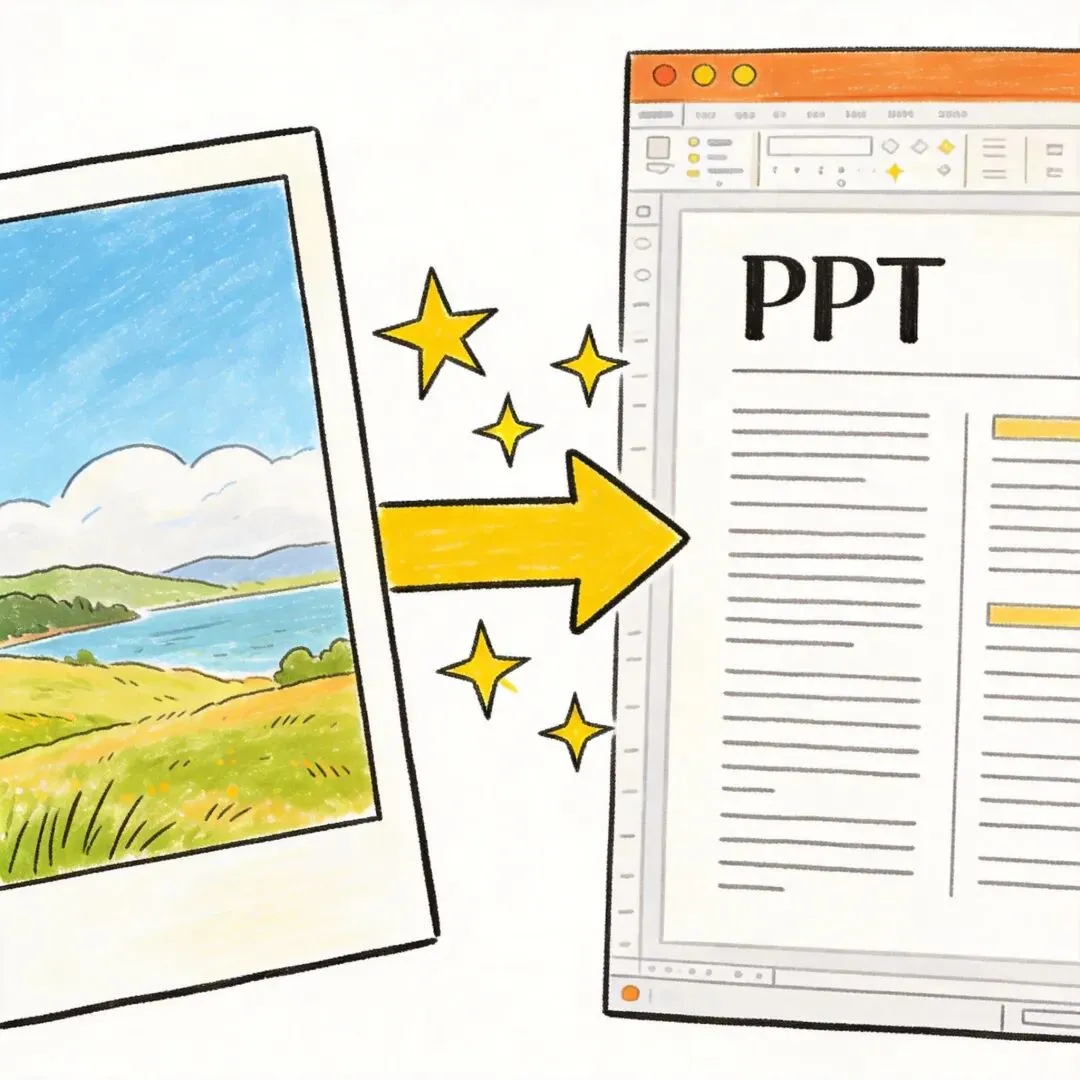 文字可以改,图片可以换,配色可以调,模板可以换。不是静态图片,是完全可编辑的PPT。AI理解图片内容,学习其视觉风格,重新生成符合该风格的PPT页面。