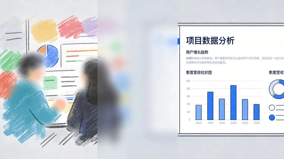 不用学设计,不用学排版,不用学配色,上传参考图片,AI自动生成。传统方式:3-5小时,i2ppt:3-5分钟,效率提升50倍。AI生成,专业度不输人工,商务演示、项目汇报、部门例会都能用。老板要改,随时改,文字、图片、配色、模板都可以调整。项目总结,需要做汇报PPT,参考优秀案例,上传参考图,AI生成专业汇报PPT,老板评价:"这个PPT做得很专业"每周例会,需要做数据汇报,参考之前的优秀PPT,上传参考图,AI生成新的汇报,同事说:"你的PPT做得越来越专业了"见客户,需要准备演示材料,参考专业案例,上传参考图,AI生成专业演示PPT,客户反应很好,合作成功市场部要做竞品分析,参考优秀分析PPT,上传参考图,AI生成新的分析报告,老板看了很满意| 传统方式 | 找模板:120分钟 设计排版:180分钟 调整细节:60分钟 总计:360分钟(6小时) |