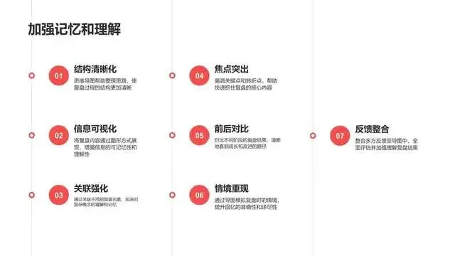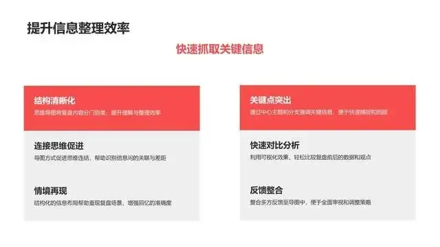 复盘的核心是回顾目标 — 评估结果 — 分析原因 — 总结规律,思维导图能把零散信息结构化、逻辑化,让复盘更清晰、高效、易落地。