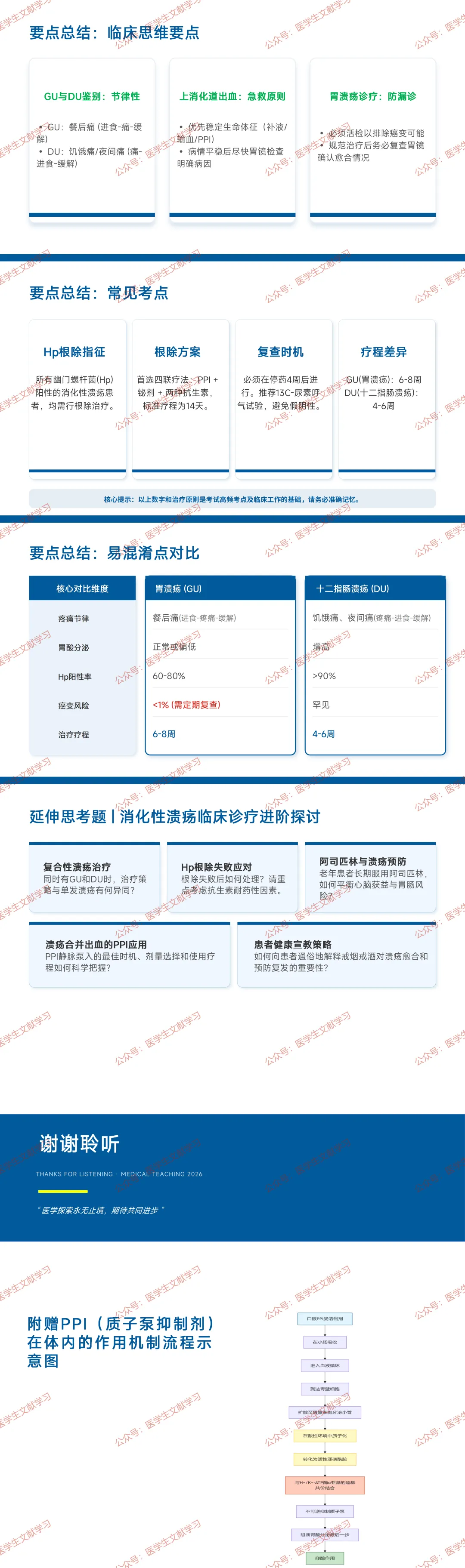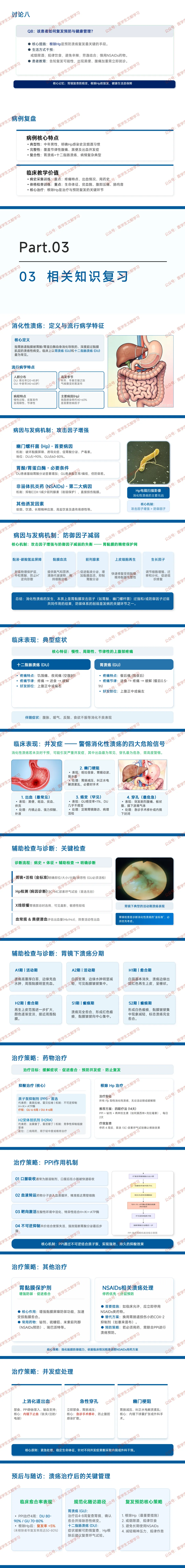 预后:PPI 治疗后十二指肠溃疡愈合率 80%-90%,胃溃疡 70%-80%;根除 Hp 后复发率<5%,未根除者 50%-80%。