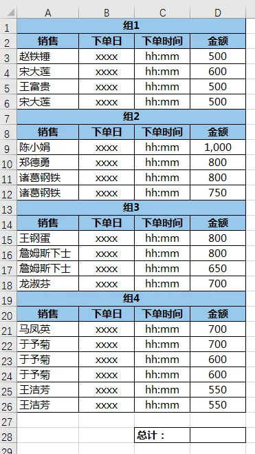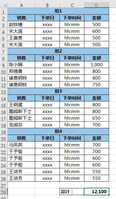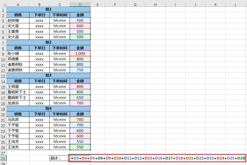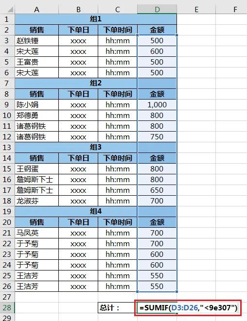 下图 1 的数据表,格式非常反人类,但是仍然需要对 D 列的金额求和。