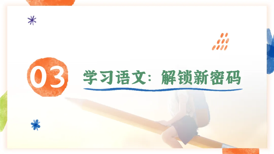 一年级下学期语文开学家长会(附58页ppt课件):家校携手共育启蒙,解锁语文学习成长密码夯实基础(无水印可编辑ppt课件完整版,下载方式见文末)方式一:长按或扫描二维码加好友,截图告知进行 有偿 获取。