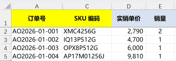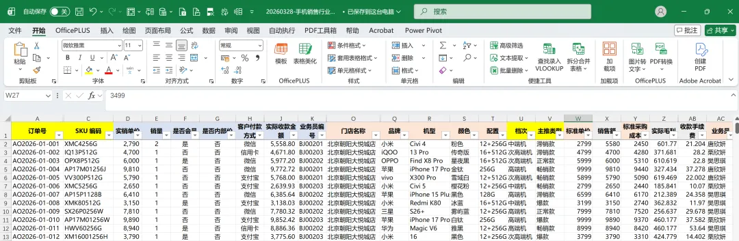 SKU编码、实销单价、标准单价、销量、销售额、客户付款方式、产品信息(品牌、机型)等