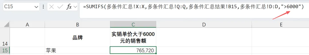 具体的单元格引用:多条件汇总结果!B15,不加引号