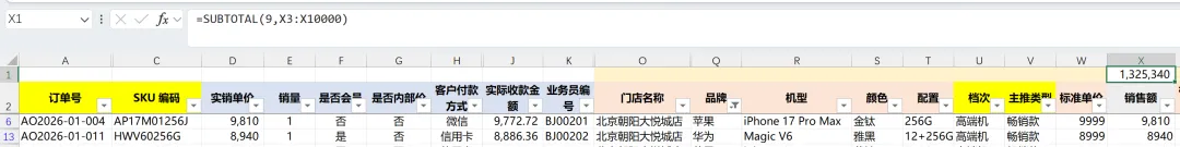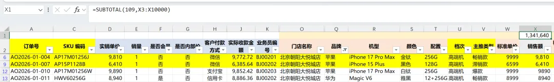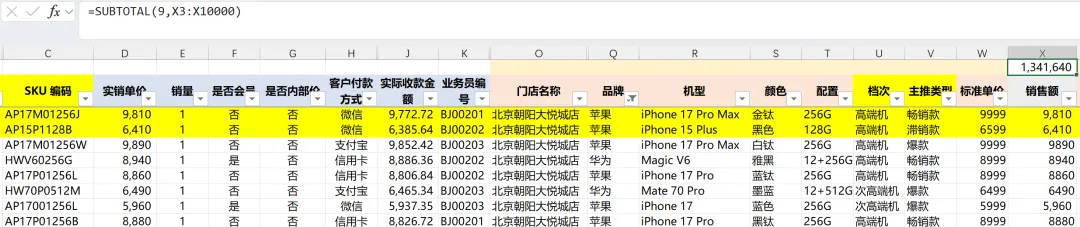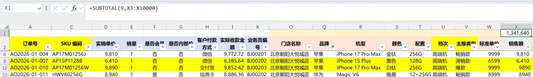 本文继续以门店手机销售数据为例,讲解多条件汇总函数的具体用法