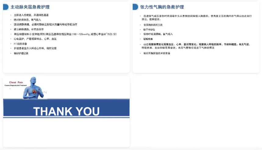 作为护理人员,我们要熟练掌握各类胸痛疾病的临床表现、急救流程和护理要点,为患者争取宝贵的救治时间。