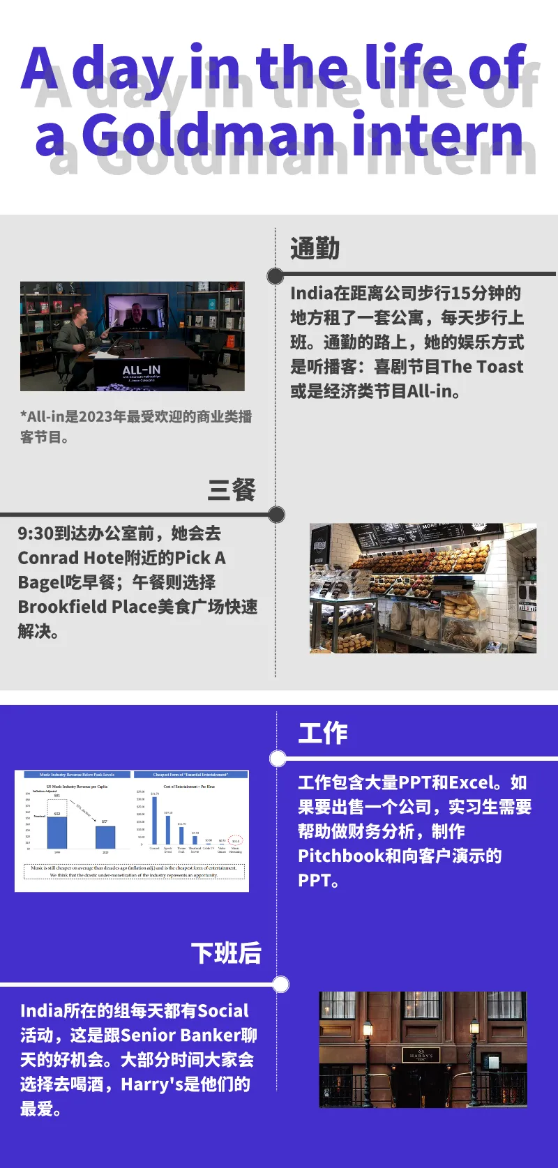 正值春招季,Business Insider采访了一位去年在高盛参加暑期实习、已经收到Return Offer的实习生,毕业于普林斯顿大学的India Stephenson,请她来给大家揭开这层面纱。去年India突破了1.5%的暑期实习录取率,加入了高盛最强的TMT投行组,在NYC Office度过了9周的实习时光。她的暑假和很多同学一样:通勤、工作、娱乐,充满了压力、咖啡因和酒精,但她的实习生活中有些部分,和大家想象中的暑期实习不太一样👇在这篇采访中,高盛负责纽约地区招聘的合伙人Dave Friedland也提到:高盛没有做Dirty Work的实习生。PPT、Excel、财务分析等等,Intern需要负责的工作和全职Analyst差不多。