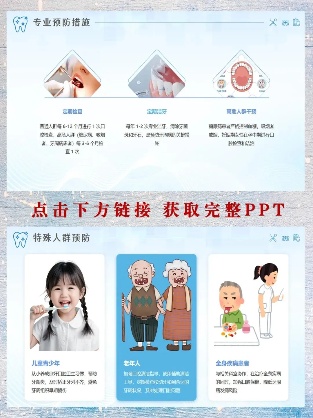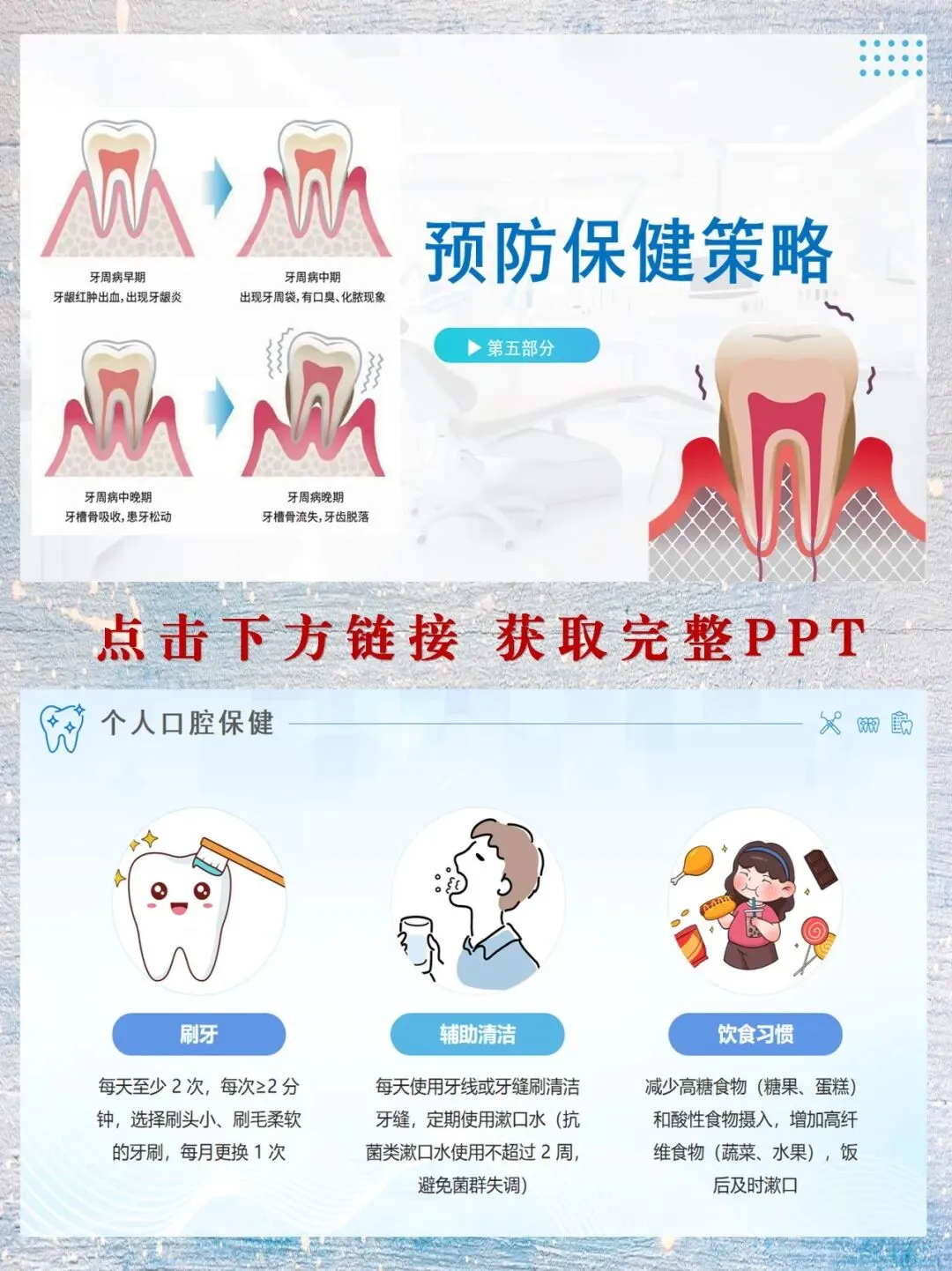 怎么防?记住“三招”:正确刷牙(每天2次,用巴氏刷牙法,每次2分钟)、用牙线/牙缝刷清洁牙缝、每年1-2次洗牙清除牙石。如果您有糖尿病、吸烟习惯,更要每3-6个月查一次口腔。